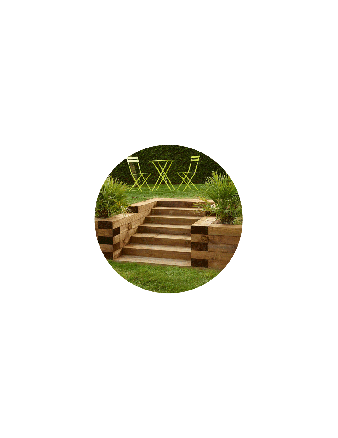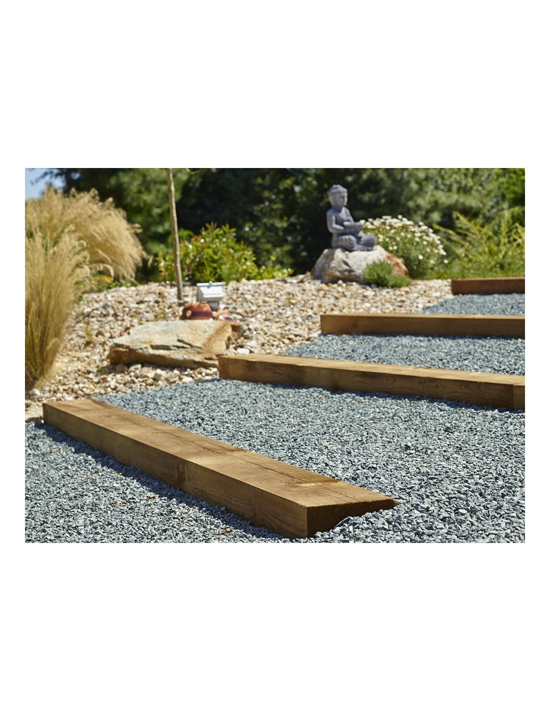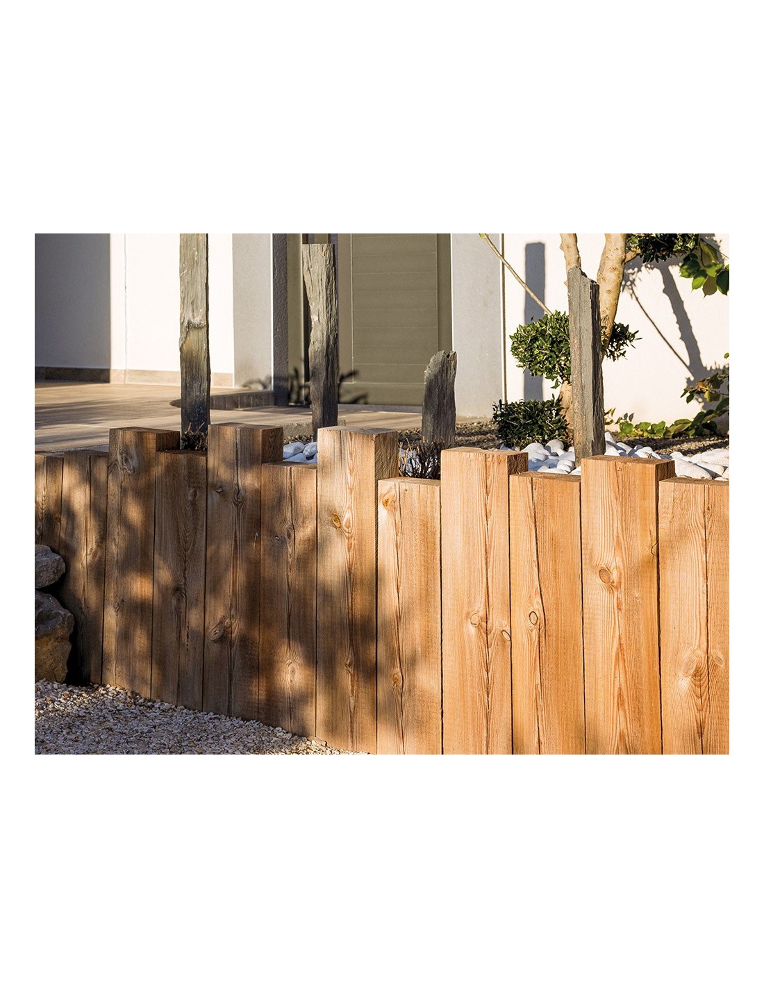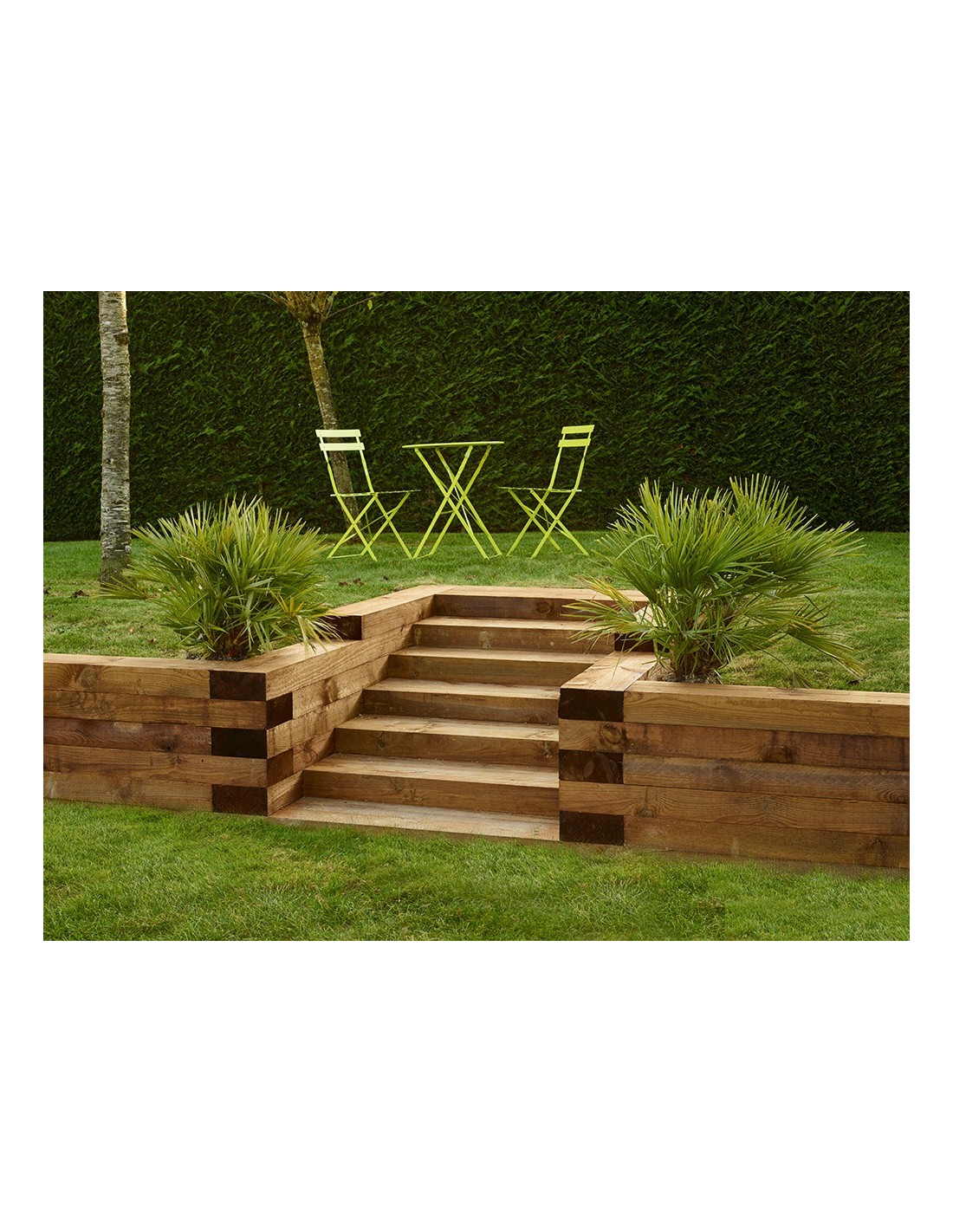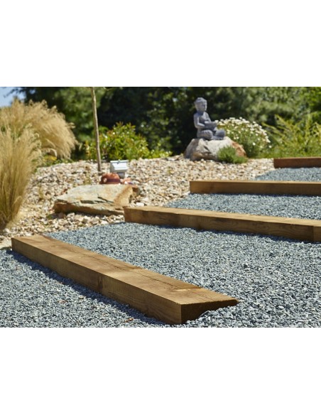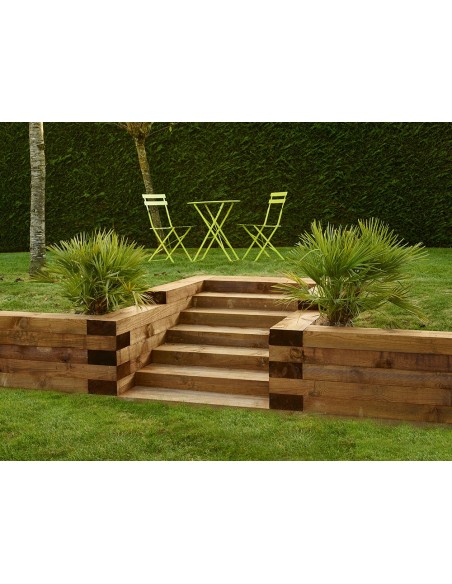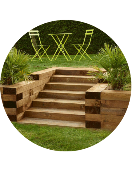 Escaliers, bordures, bacs à fleurs, retenues de terre, l'usage de la traverse paysagère en pin est multiple pour votre jardin.