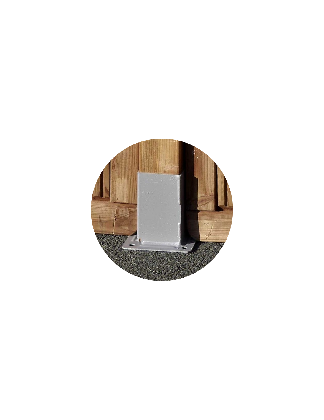 – Fixation du poteau bois : prévoir 4 vis penture Ø 7 x 30 mm