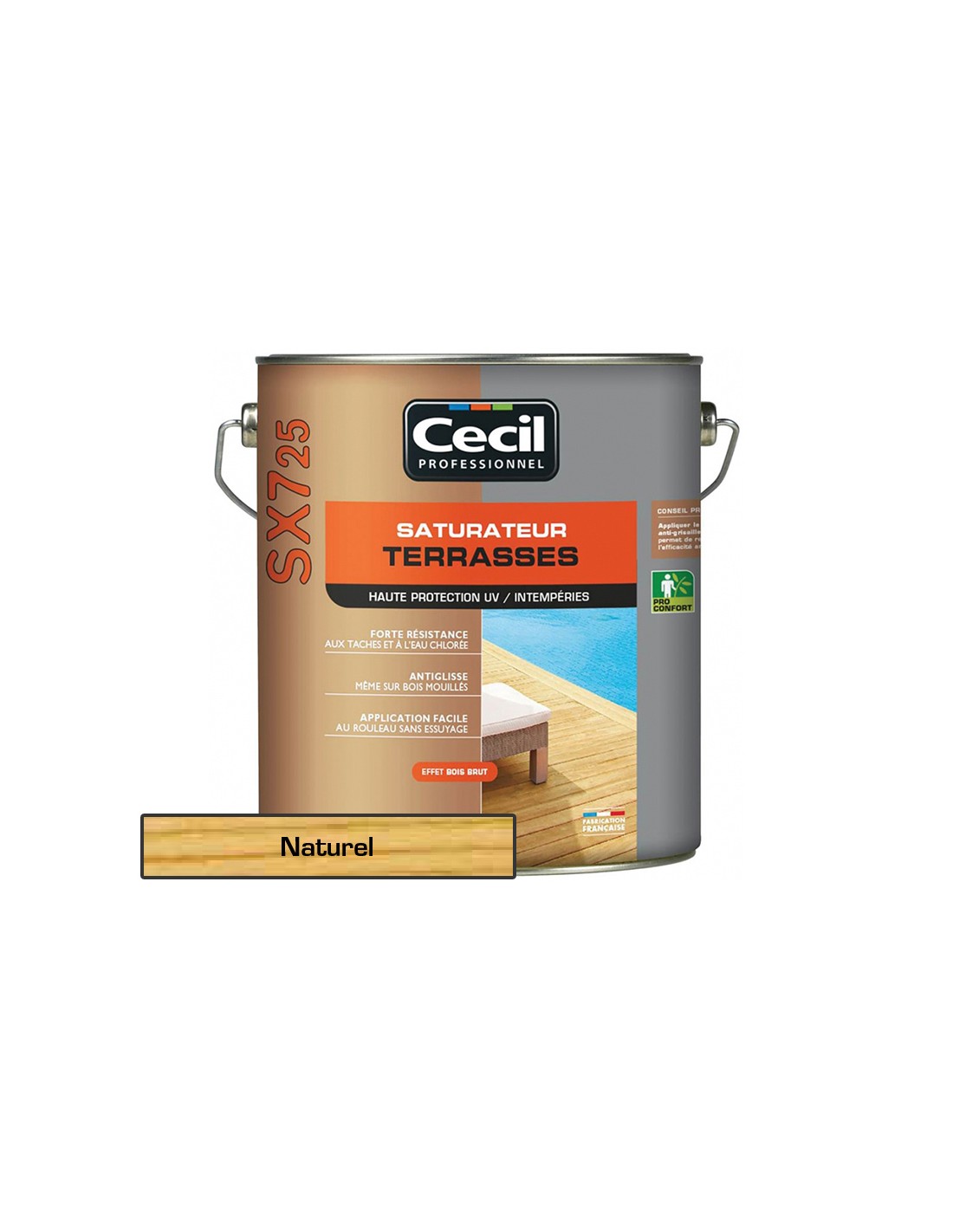 Le Saturateur CECIL SX725 Terrasses apporte une haute protection pour les bois extérieurs horizontaux.