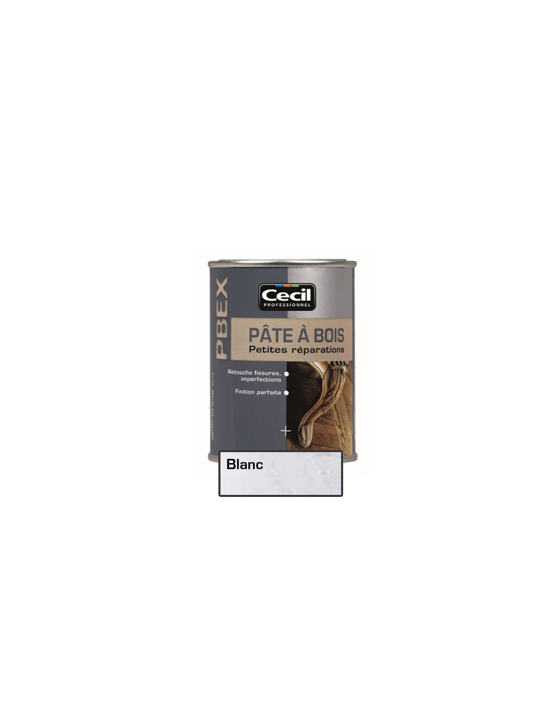 Pâte à Bois CECIL PBEX en phase aqueuse, pour le rebouchage des nœuds, fissures, trous et petits orifices. Se travaille comme le bois : se ponce, se peint, se vitrifie, se vernit, accepte clous et vis...
