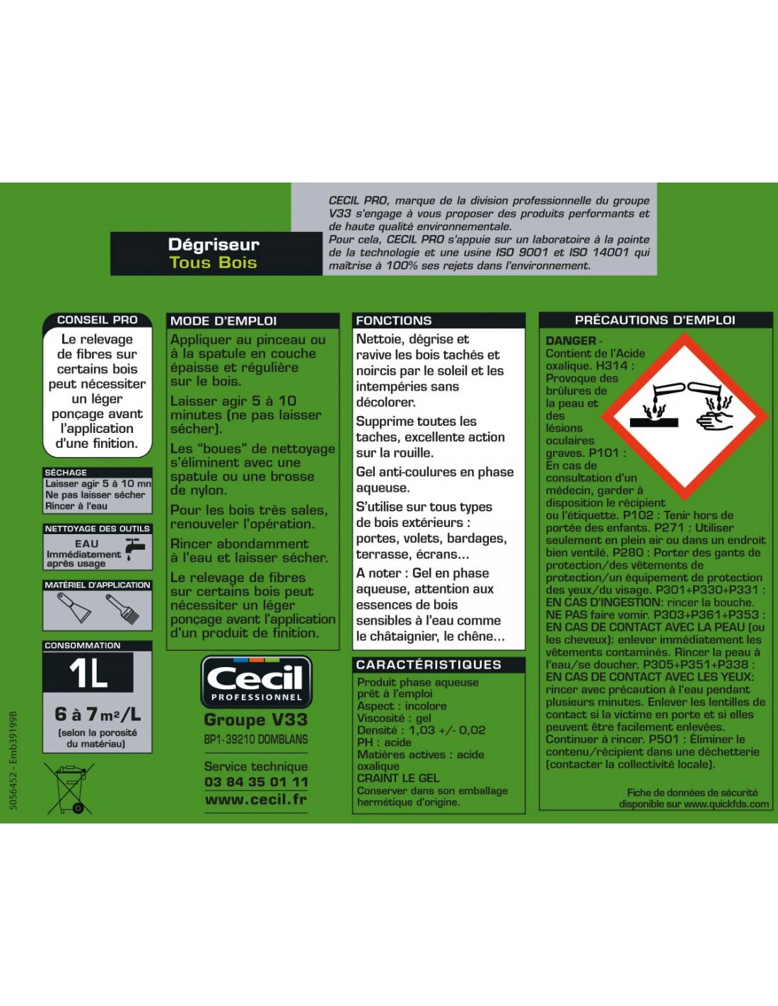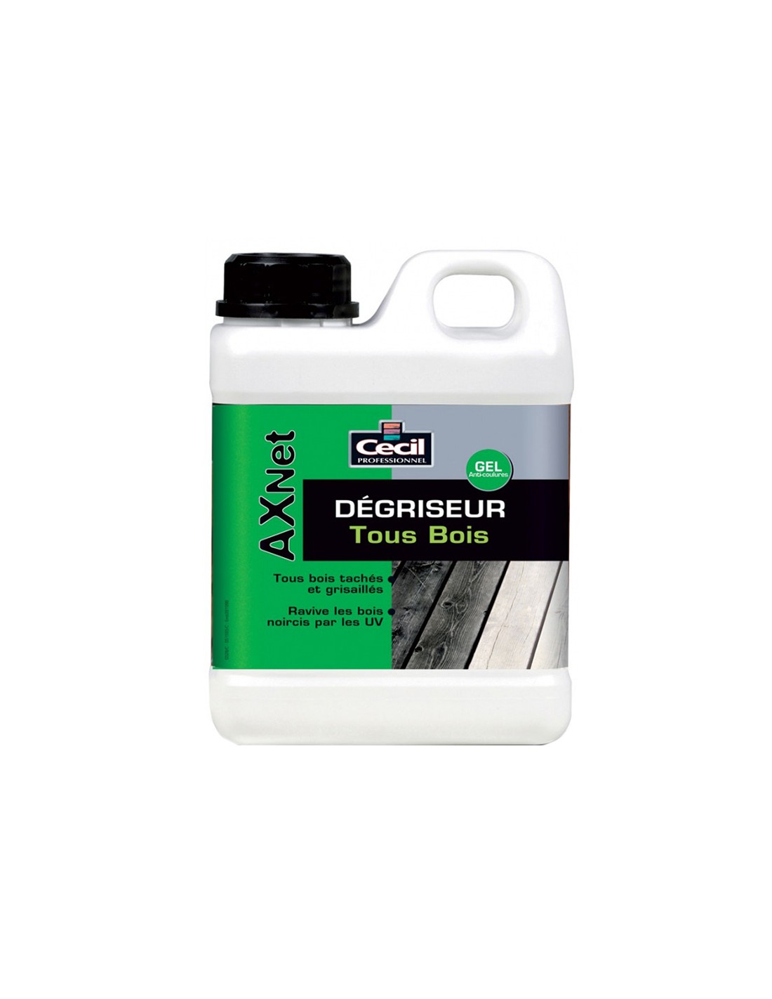 Le dégriseur CECIL AX NET dégrise, éclaircit et nettoie tous les bois grisaillés par les UV et les intempéries. Ce produit bois extérieur permet également d'éliminer les traces de rouille et les coulures.