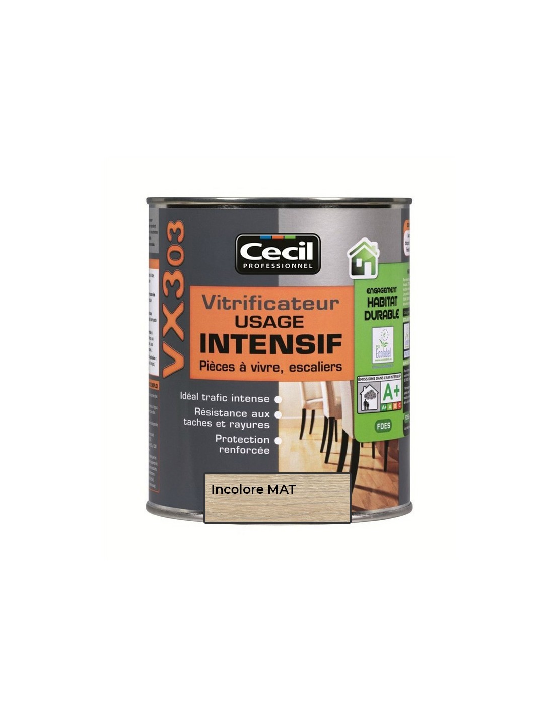 Le vitrificateur CECIL VX303 usage intensif est destiné à être utilisé dans les habitations fortement sollicitées.