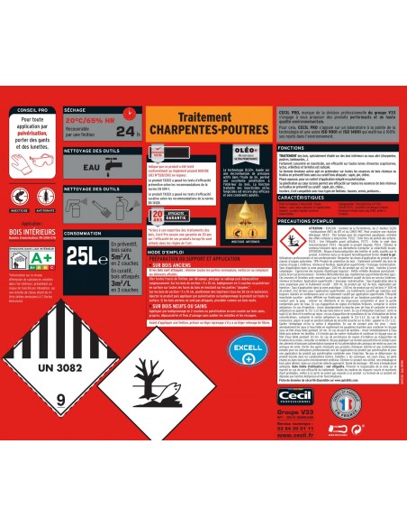 CECIL TX202 - Traitement Charpentes Poutres - 25 LITRES