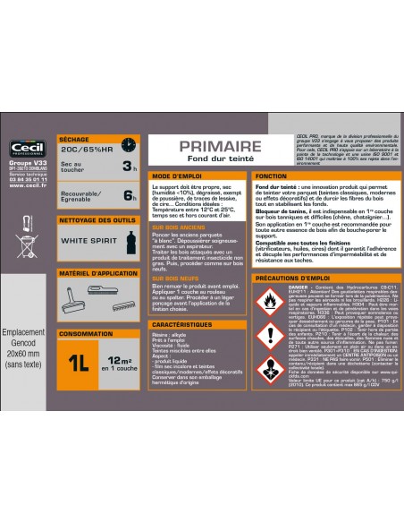 Le Primaire fond dur teinté CECIL PX302 est un produit uniquement qui permet de teinter votre parquet, escaliers, meubles... ( teintes classiques, modernes ou effets décoratifs ) et de durcir les fibres du bois tout en stabilisant les fonds.