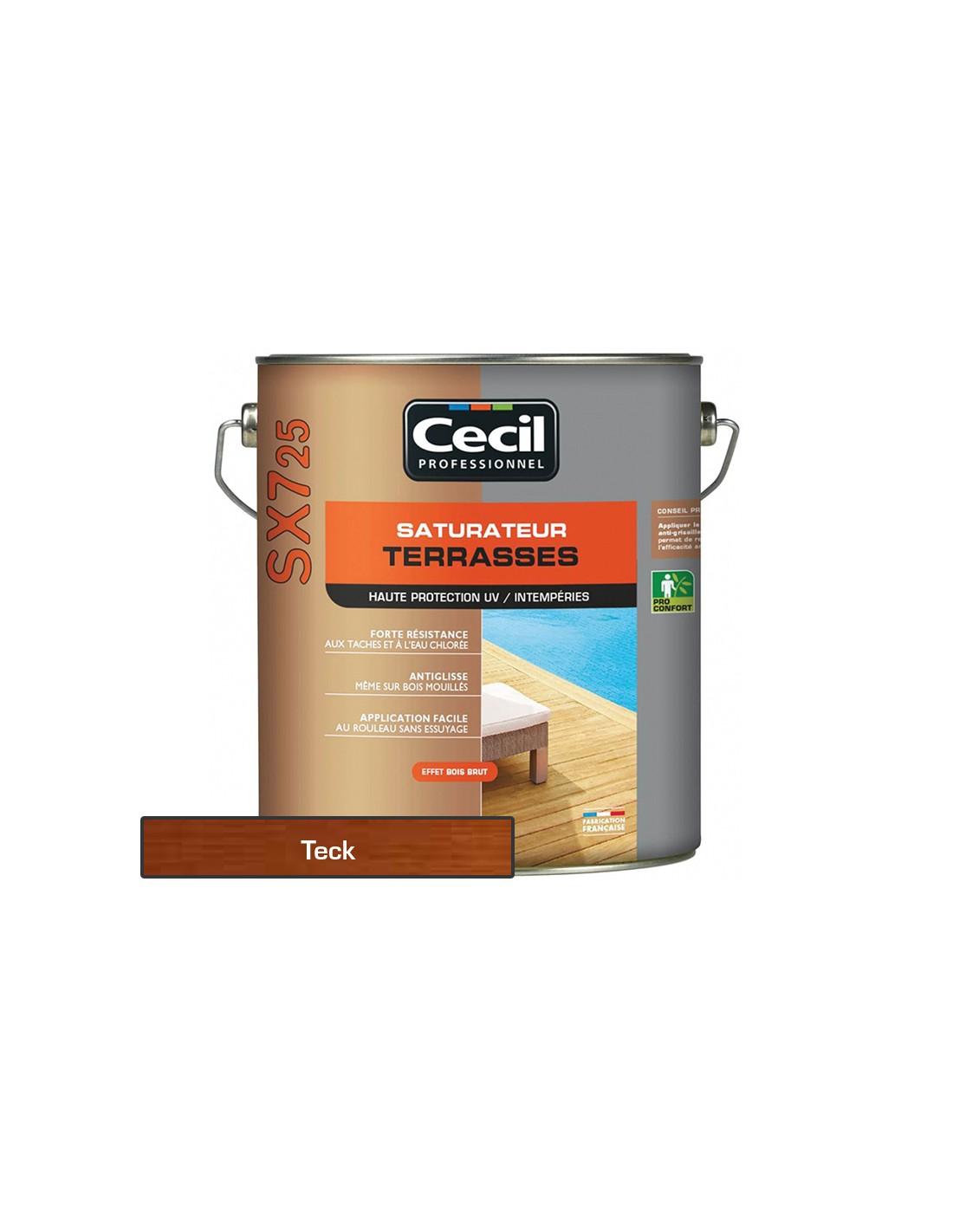 Le Saturateur CECIL SX725 Terrasses apporte une haute protection pour les bois extérieurs horizontaux.