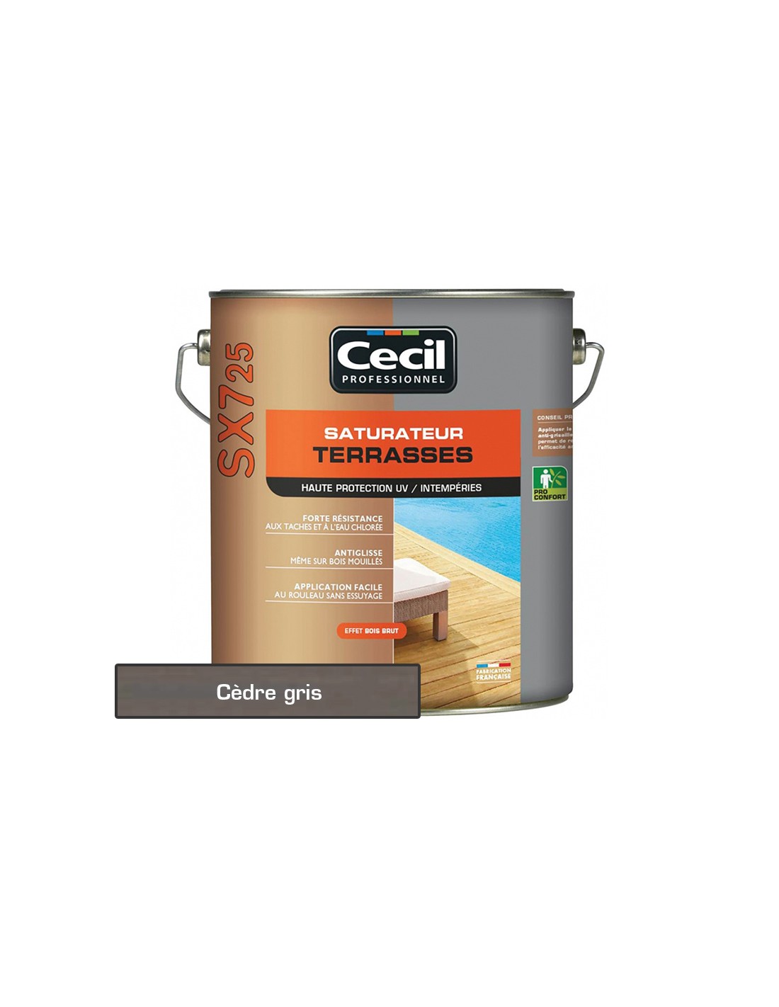 Le Saturateur CECIL SX725 Terrasses apporte une haute protection pour les bois extérieurs horizontaux.
